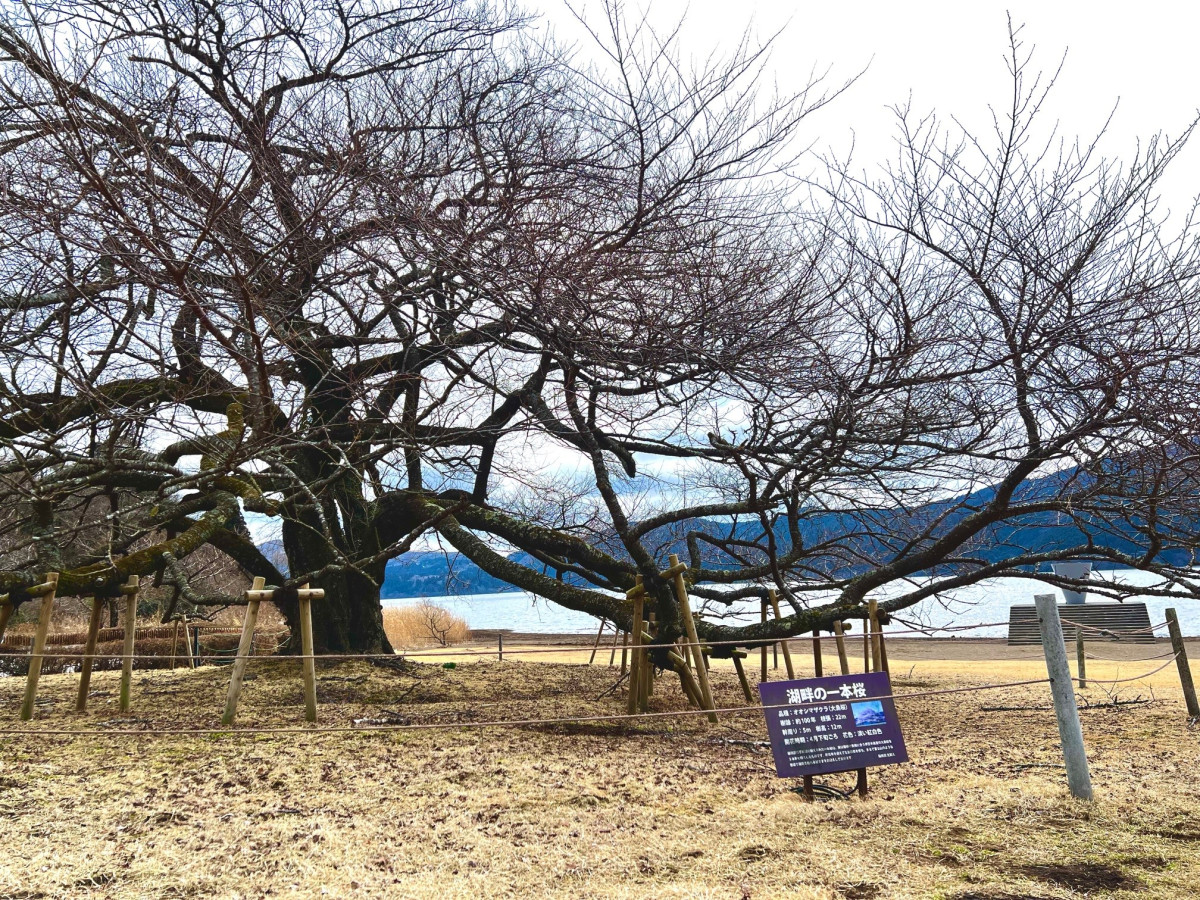箱根園「湖畔の一本桜」 春の訪れを感じて開花の準備